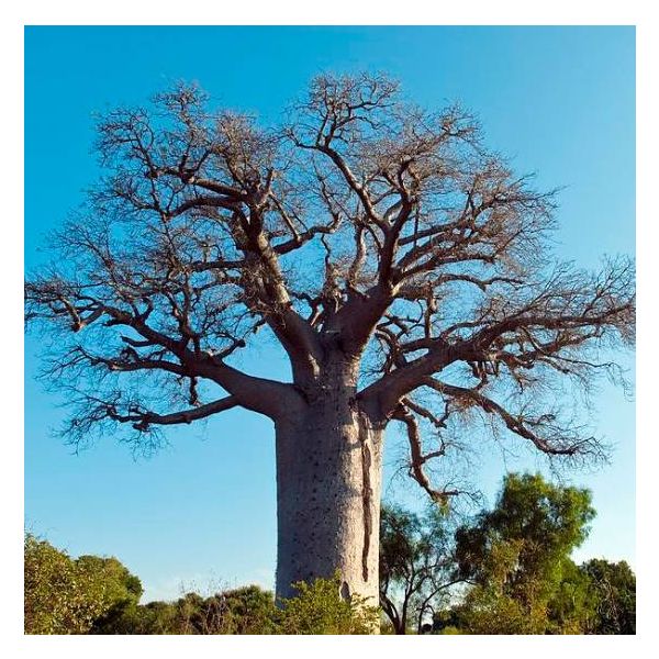This iconic baobab can grow up to **25 meters (82 feet)** tall, with a thick, water-storing trunk that allows it to withstand long dry periods. It produces large, cup-shaped flowers followed by nutritious seed pods.
