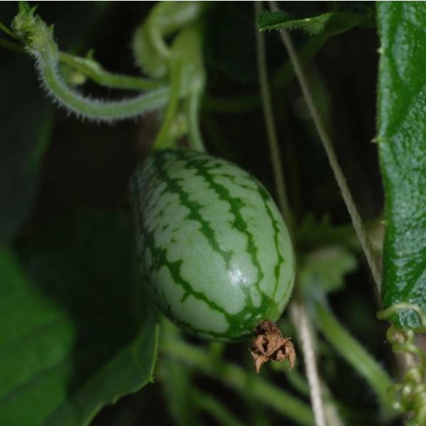 Le concombre à confire, ou Cucamelon, est une plante grimpante de la famille des Cucurbitacées originaire du Mexique et d'Amérique centrale. Elle produit de petits fruits comestibles à l'épiderme tigré de la taille d'une grosse olive.