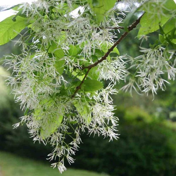 Deciduous tree with fragrant, fringe-like white flowers, perfect for adding elegance to sunny or partially shaded gardens.