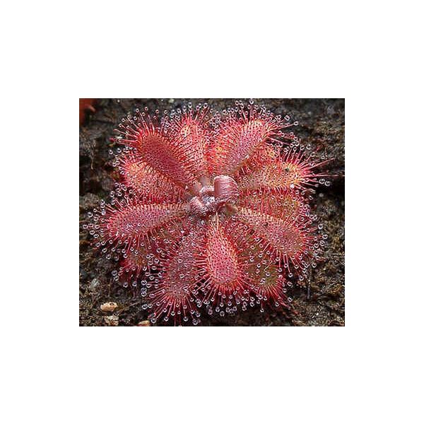 Drosera montana est une subtropicale d'environ 5cm de diamètre, quelques fois, un peu plus. Elle est originaire des montagnes et plateaux du Brésil, ainsi que du Vénézuella. Pour une subtropicale, elle peut tolérer un peu de froid. Les feuilles vertes ont des tentacules rouges, qui la fait paraître entièrement rouge. Les feuilles sont minces et près du sol. La floraison est rose et provient d'une tige rouge s'élevant à partir du centre de la rosette. Elle fleurit à la fin de l'Hiver ou au début du printemps. Les insectes sont attirés aux feuilles par la luisance des poils. Les feuilles s'enroulent autour des proies tel le mouvement d'un poignet. Une fois attrapé, l'insecte est digéré par les fluides digestifs émis par la plante. C'est une façon unique d'obtenir du nitrogène, permettant à ces plantes de vivre dans des sols pauvres en cette substance. Zone de rusticité 10, (4°C/40°F) en Hiver. Vous devez la cultiver à l'ombre et la protéger des rayons directs du soleil. La température idéale le jour est de 22°C / 71°F, et la nuit de 10°C /50°F. Elle apprécie la fraîcheur, mais évitez le froid. Ceci correspond habituellement à un climat d'Automne d'une région tempérée ou celui de la méditerranée. Les jeunes plants doivent être protégés d'une température trop chaude. Drosera montana ne devient pas dormante, mais ralentit quelque peu sa croissance en Hiver. En nature, on la retrouve sur des roches, le long des rivières, ou autres endroits humides. Elles peuvent être plantées sur des roches recouvertes d'algues bleues. La roche doit être déjà très humide avant de planter. Elle peut bien germer dans un mélange de mousse de sphaigne et de sable, qui peut être constitué de 50% à 70% de mousse de sphaigne. Vous n'avez pas à fertiliser puisque la plante compte sur les insectes pour se nourrir. L'humidité doit être entre 60-80%. Elle a besoin d'une atmosphère et d'un sol humide. L'eau doit être distillée ou de l'eau de pluie, puisqu'elles ne tolèrent pas l'eau du robinet. C'est une bonne idée de placer une soucoupe contenant un pouce d'eau, sous le pot. Élevez le pot en plaçant des cailloux, de sorte à ce que la base du pot soit à peine en contact avec l'eau. Ceci procurera à la plante une source d'humidité constante.