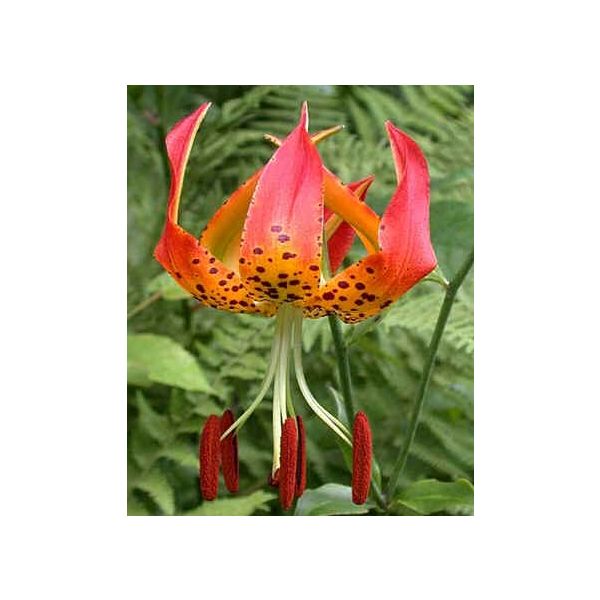 | Germination | Sowing the Superbum seeds outdoors in the spring and waiting one year for germination is the easiest method. For faster results, soak the seeds for 24 hours in warm water. Sow the seeds about 1mm deep in a Peaty seed sowing mix at about 22øC, for 90 days. If they don?t germinate, put the pot in a plastic bag in the refrigerator for 90 days before bringing them back into a warm location for germination. Remove the plastic as soon as the first ??hairpin?? shoot shows and place in good light. Water and light are all the seedlings will need for awhile. When most of the seed has sprouted, you may start feeding about every two weeks with dilute liquid fertilizer? organic fish emulsion is good. These first grass-like leaves are call cotyledons. The true leaves, which are broader, will appear in about four more weeks and in rapid succession from then on. Seedlings grown indoors will need to adjust to the brighter light and cooler temperatures before planting out. A protected place, out of wind and full sun for a couple of weeks, should condition them for their new outdoor life. Set them directly into a raised nursery bed of carefully prepared soil, spacing the seedlings individually about six inches apart. Watered in with a ??starter solution?? and shaded for a few days, the little babies will grow merrily on as if nothing had happened. For those who hesitate to handle such young seedlings and fear a possible setback if the roots are disturbed, the containers may be placed in the cold frame until fall. The plants may take three years to reach their full size. Turk's cap lily bulbs should be planted 4 to 6 inches deep. Germination can take longer. Be patient! |