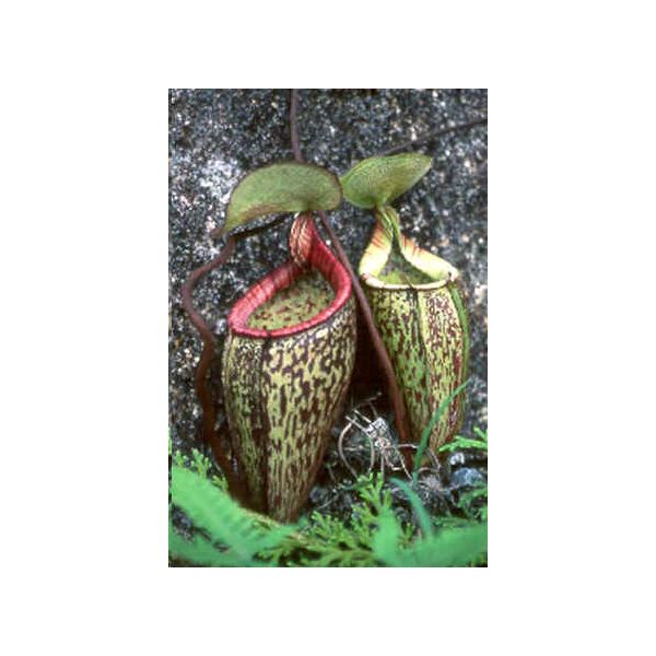 | Germination | Nepenthes seeds should be started on chopped live sphagnum moss in very damp but not wet conditions. If the sphagnum starts to overgrow the seeds, pinch it back with a forceps. Sow the N. Macfarlanei seeds, on the surface, very sparingly. It is best to spray the sown seed with a fungicide to help keep the seeds from molding. Cover the pots or place them in plastic bags in warm, 32øC (90øF) plus temperatures. They should be in light shade or under fluorescent lights. Germination can take from 4 weeks to almost a year. Most seedling Nepenthes are lost soon after germination. For the best survival rate, transplant the seedlings on the week of germination. If transplanted with care and spaced about 1 to 2 cm apart in live sphagnum, fungus and desiccation problems are greatly reduced. Transplant the seedlings as they just begin to overgrow each other or their pots. Short day periods and cool temperatures are the most dangerous for the plants. Try to keep them warm and humid but not stagnant and wet. Watering and misting should be performed frequently, and preferably with distilled water, to avoid mineral build-up that is not only unsightly but that may damage the delicate roots of Nepenthes (and most other carnivorous plants). Standing water is inadvisable. A wet, well-draining potting medium is a necessity. Methods of feeding are varied - some growers feed freeze-dried bloodworms or Koi pellets (both available in the fish section of most pet stores); others prefer orchid mixes. No carnivorous plant should ever be fed mammalian meat - this will result not only in an unpleasant smell but also the probable rotting of the pitcher and potential death of the plant. The digestive enzymes present have not evolved to handle large prey items, and the rotting material gives opportunistic bacteria and fungi a chance to take hold. Germination can take longer. Be patient! |