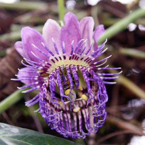 Passiflora seemanii est originaire du Mexique au Panama, de la Colombie, du Nicaragua et du Vénézuella. Elle se développe au niveau de la mer, jusqu'à une altitude de 1600 mètres. On la cultive pour ses fleurs ornementales et ses larges fruits. La plante grimpe par le moyen de vrilles et peut se développer en pot. Elle peut être cultivée en tant que plante de maison, près d'une fenêtre ensoleillée. L'une des plus belle et exotique Fleur de la Passion. Ses fleurs sont d'un violet-bleuté et d'un vert délavé. Les feuilles sont pleines, bi-lobées ou tri-lobées. La taille est essentielle pour conserver la vigne en santé. Taillez les pousses moins vigoureuses et occasionnellement quelques pousses vigoureuses, pour favoriser la floraison. Une fois établit et sans taille, les Passiflora peuvent aisément envahir tout un jardin, privant les autres plantes de soleil. Zone de rusticité 11, (4°C/40°F) en Hiver. Protégez du froid ou plantez dans une région sans gèle. Conservez une atmosphère humide en Été et cultivez la plante au soleil. Elle peut se développer dans des conditions partiellement ensoleillées. Elle adore les températures chaudes et humides des Tropiques. Vous pourriez devoir arroser vos plantes à chaque jour pendant les chauds mois d'Été. En Hiver, les racines doivent être conservées humides, mais puisque la croissance sera ralentie, vous n'aurez probablement qu'à arroser une fois semaine, dépendamment de votre climat. Utilisez un sol sablo-argileux et un peu de mousse de sphaigne. Fertilisez au moins deux fois par mois lors de la saison de croissance. Si le pot est trop large, ou si les racines peuvent s'étendre à l'infini, la plante deviendra de plus en plus grosse, mais ne fleurira pas beaucoup et ne produira pas de fruits. En limitant la taille du pot, vous limitez la capacité de la plante à grandir, ce qui est perçu par elle comme une menace. Son mécanisme naturel la mène à produire des semences pour la prochaine génération. Un pot de bonne taille pour un plant adulte serait de 12 pouces de diamètre.