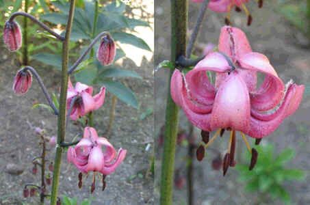 Lilium martagon pilosiusculum est un espèce rare en Russie (Sibérie) et Mongolie. Il croît en tant que vivace en forêts et dans des pentes ombragées à une altitude de 200 à 2500 mètres. Facile à cultiver. La tige atteint 45-90 cm, les fleurs sont de 2 à 7 sur une tige, très parfumées et se développent en Juin et Juillet. Les fleurs sont pendantes, d'un rose à mauve, parsemées de zones plus foncées de violet à mauve. Les fleurs sont hermaphrodites, elles ont chacune les organes mâles et femelles. Ce Lis a un feuillage d'un vert foncé et il perd ses feuilles en Hiver. Zones de rusticité 3-8, (-37°C/-35°F, -10°C/15°F) en Hiver. Procurez un sol riche, bien drainé, avec un pH acide à neutre. Arrosez régulièrement; ne pas trop arroser à chaque fois et ne laissez pas le sol s'assécher complètement. Le plant croît très bien partiellement à l'ombre ou au soleil.