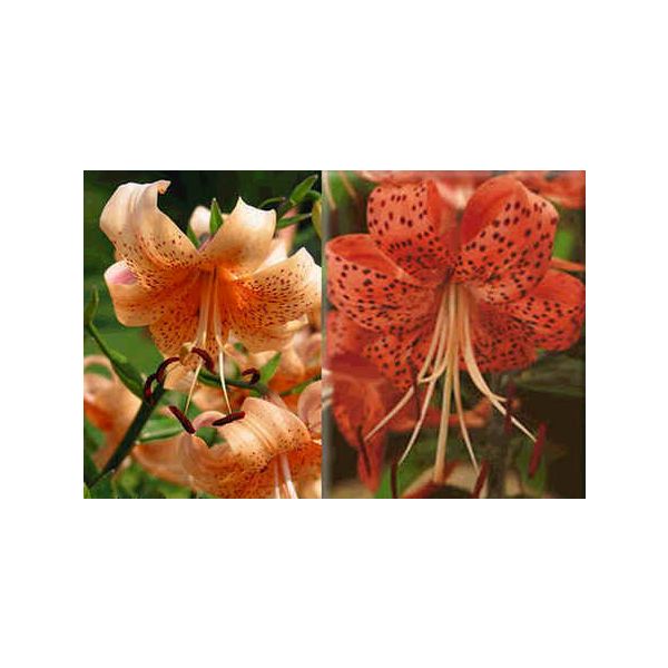 Ceci est un mélange d'hybrides de Lilium lancifolium, Lilium tigrinum, le Lis tigre. Ces hybrides proviennent de différents croisements. Plusieurs fleurs seront de couleur pastelle et quelques unes seront droites. Le Lis Tigré est un Lis d'Asie qui peut atteindre de 2 à 5 pieds de haut. Une belle plante de jardin qui développera une floraison tardive. Le Lis Tigré est orange, tel un tigre, mais plutôt que d'arborer des rayures, ils ont des taches noires. La floraison se produit principalement en Juillet et Août, les fleurs peuvent atteindre de 6-12". Les fleurs sont hermaphrodites, elles ont chacunes les organes mâles et femelles. Les Lis forment un bulbe. Les bulbes ne sont jamais complètement dormant, ils doivent être manipulés délicatement. Zones de rusticité 3-8, (-37°C/-35°F, -10°C/15°F) en Hiver. Lilium tigrinum adore le soleil, un sol standard, il tolère une variété de pH et préfèrent des conditions modérément humides. Procurez au moins 6 heures de soleil par jour. Arrosez régulièrement sans trop arroser à chaque fois. Ce Lis peut se développer dans un sol pauvre, mais le plant préfère un sol enrichi, léger et bien drainé. Le Lis Tigré pardonne les erreurs et négligences.