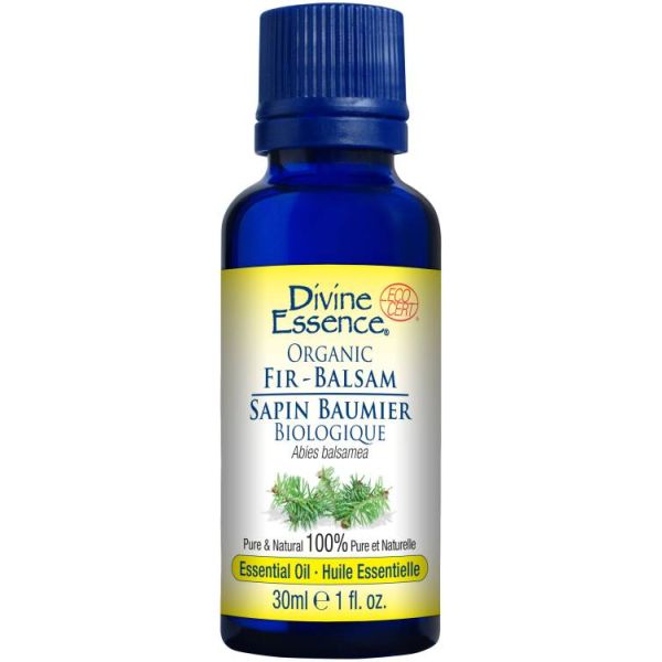 Sapin Baumier Biologique (Abies balsamea) - Huile Essentielle 100% pure et non diluée DIVINE ESSENCE ® HUILES ESSENTIELLES AUTHENTIQUES DE QUALITÉ SUPÉRIEURE, COMPLÈTES, CHÉMOTYPÉES, À PRIX ABORDABLES ! Certifiée biologique par ECOCERT Canada.